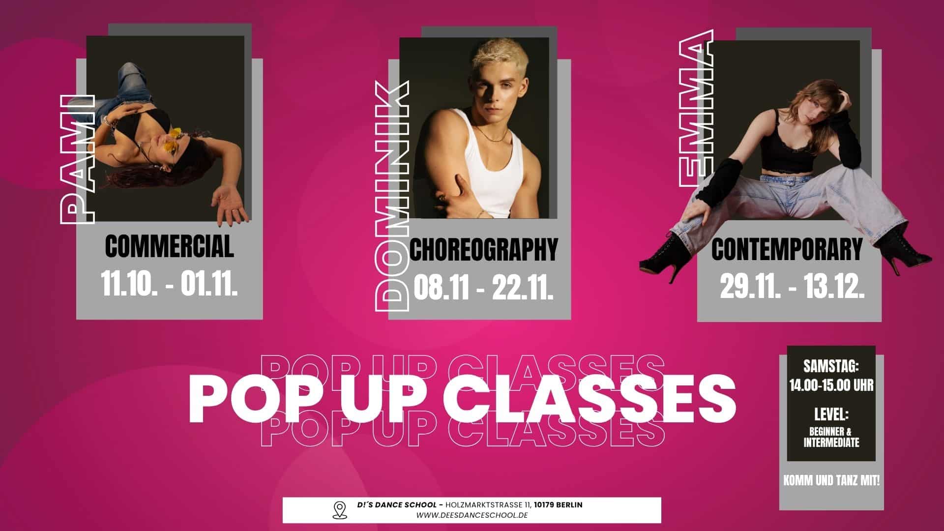 Tanz, vibe, repeat! Unsere neuen Pop-up-Classes:➡️ Commercial Beg/Int | 11.10.–01.11.14.00–15.00 Uhr | mit Parmi ➡️ Choreography Beg/Int | 08.11.–22.11. 14.00–15.00 Uhr | mit Dominik ➡️ Contemporary Beg/Int |
